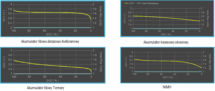 Wbudowane, do wyboru, dane akumulatorów różnych typów