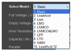 | Profesjonalne oprogramowania symulacyjne BS2000 Pro i wielokanałowe BS2000M zapewniają użytkownikowi unikatowe funkcje modelowania. Mają wbudowane dane popularnych akumulatorów różnych typów, a w tym też ich krzywe charakterystyczne. Aby móc symulować krzywe charakterystyczne modułów akumulatorów różnych typów i o różnych pojemnościach, użytkownik powinien tylko wybrać typ akumulatora i skonfigurować jego parametry szeregowe oraz równoległe. Użytkownik oprogramowania BSS Pro może wybrać akumulatory następujących typów: litowo-jonowe, LMO, LNMCO, LMN CO i LMO, LFP, LTO i NiMH. * Podstawowa wersja oprogramowania BSS2000 może być używana do symulowania akumulatorów kwasowo-ołowiowych i litowo-jonowych. |