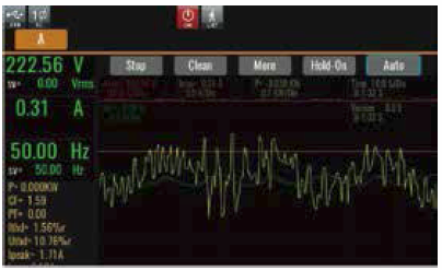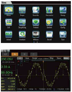 | Intuicyjny ekran dotykowy Przyrządy serii IT7800 wyposażono w nowo zaprojektowany ciekłokrystaliczny ekran dotykowy, graficzny interfejs użytkownika o prostej i intuicyjnej obsłudze oraz klawiaturę z pokrętłem, które pozwalają użytkownikowi bezpośrednio i szybko prowadzić testy. Użytkownik interfejsu może wybierać różne style wyświetlania, dostosowywać do własnych wymagań typy wyświetlanych parametrów i miejsca ich wyświetlania na stronie. Ustawienia przyjazne dla użytkownika pozwalają spełnić różne potrzeby pomiarowe. Na ekranie przyrządu mogą być wyświetlane w czasie rzeczywistym krzywe napięcia i prądu, maksymalnie 6 przebiegów. Użytkownik może natychmiast je analizować (bez potrzeby używania do tego zewnętrznego oscyloskopu), a następnie wprowadzać do pamięci przyrządu. |