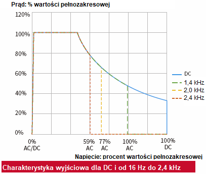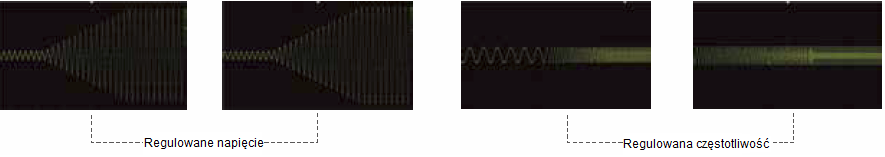 • Częstotliwość sygnału wyjściowego wyjściowa: możliwość regulacji w zakresie od 16 Hz do 2,4 kHz, programowane ustawianie czasu narastania przy zmienianiu amplitudy napięcia i częstotliwości