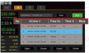 • Tryb listy symulujący reprodukcję zasilania, przeznaczony do symulowania krótkich przerw w zasilaniu