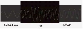 | Tryby listy (LIST), przemiatania (SWEEP), wzrostów i zapadów (Surge&Sag) Dzięki wyposażeniu w tryby listy, przemiatania oraz wzrostów i zapadów zasilacze serii IT7800 mogą zmieniać w sposób skokowy lub ciągły wartości parametrów wyprowadzanego sygnału. Wyprowadzaną amplitudą napięcia, częstotliwością, fazą, przebiegiem oraz innymi parametrami można sterować za pomocą wyzwalania wewnętrznego lub zewnętrznego przyrządu. Stąd też można symulować charakterystykę chwilowej awarii zasilania, udaru oraz powolne narastanie wyprowadzanej wielkości różnych zasilaczy. |
