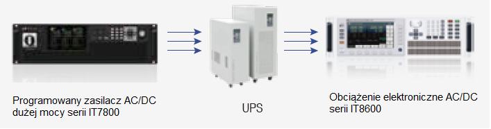 • Sprzęt użyty do testu: programowany zasilacz AC/DC dużej mocy serii IT7800, obciążenie elektroniczne AC/DC serii IT8600